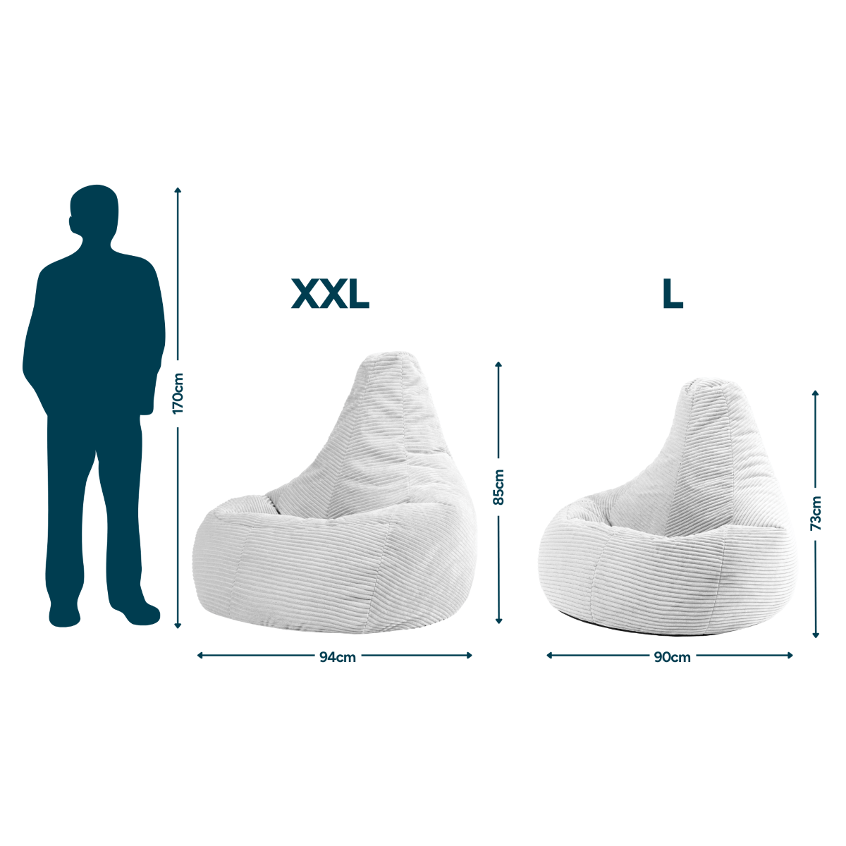 SUPPORTIVE XL RECLINER DESIGN: Your favourite Icon bean bag, super-sized. This extra-large bean bag chair has been expertly designed in a recliner shape, with a supportive back and clever internal fabric structure for ultimate comfort. Due to the nature of bean filled products, dimensions may vary slightly.